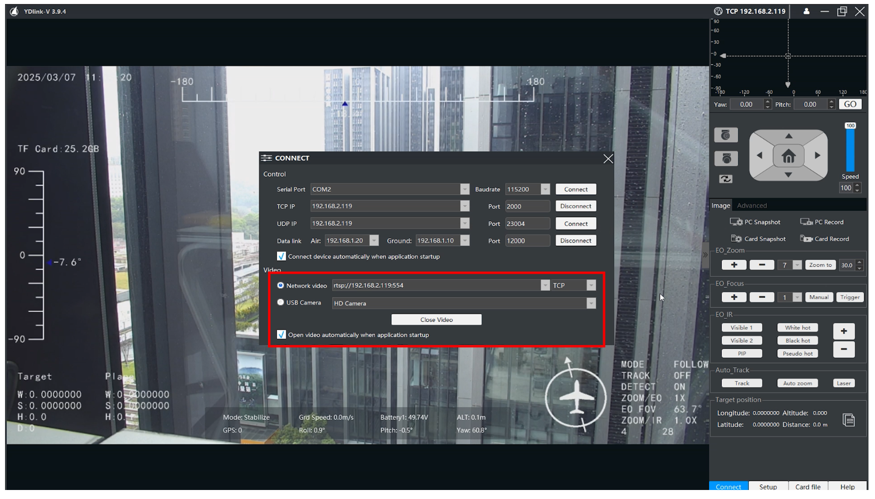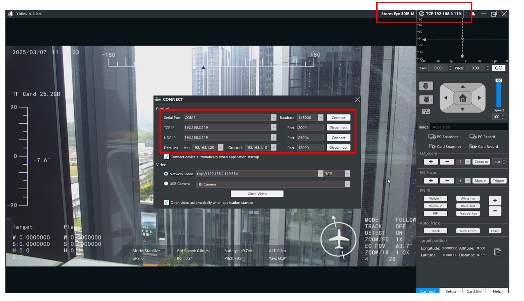 * Step 2. Click the “Connect” botton to enable gimbal control.