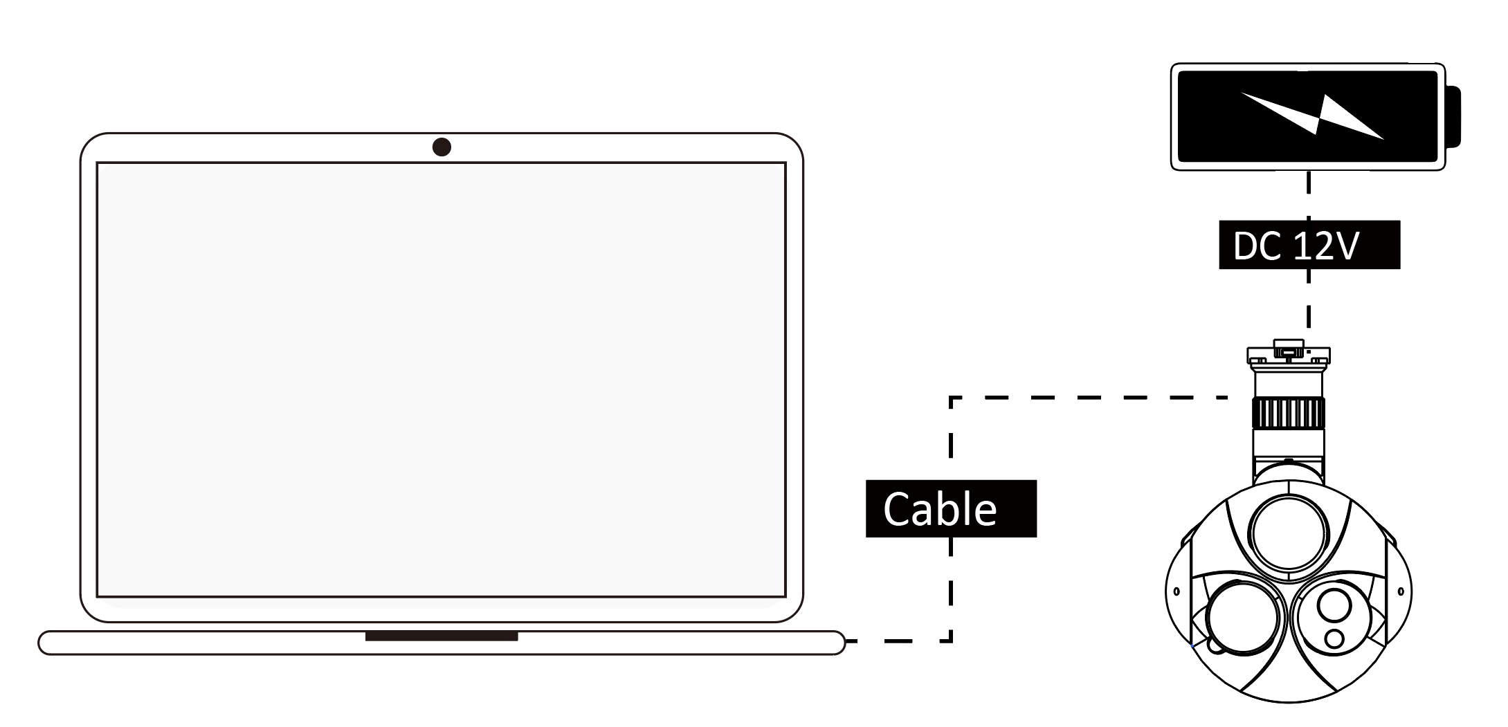 1.2.1. Power on the gimbal by DC12V(3S). and Connect it to PC by RJ45 cable