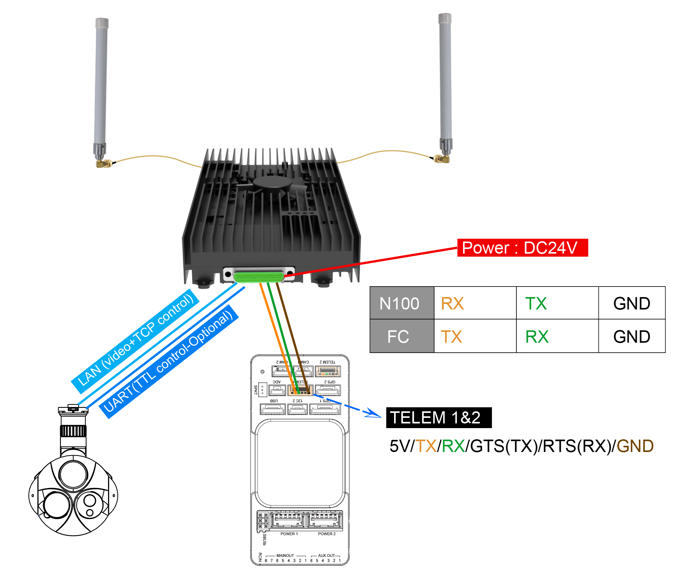 3. The position of the antenna has a great influence on the image transmission distance. Avoid placing any part of the antenna close to the metal equipment, and at the same time keep the antenna open within a short range to ensure the effective transmission of the signal;